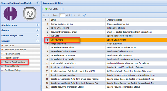 Use this utility to update Debtors and Creditors last payment date.