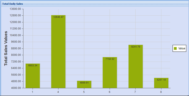 Total daily sales can be viewed by Bar or line graph