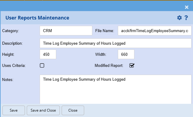 This form is used to insert or maintain existing reports.