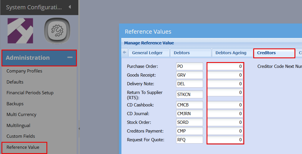 You will need to set the Reference Value for under Creditors Tab