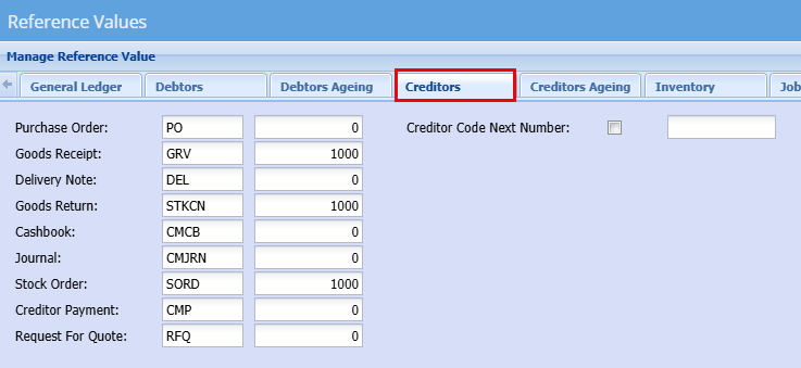 You will need to set the Reference Value for under Creditors Tab