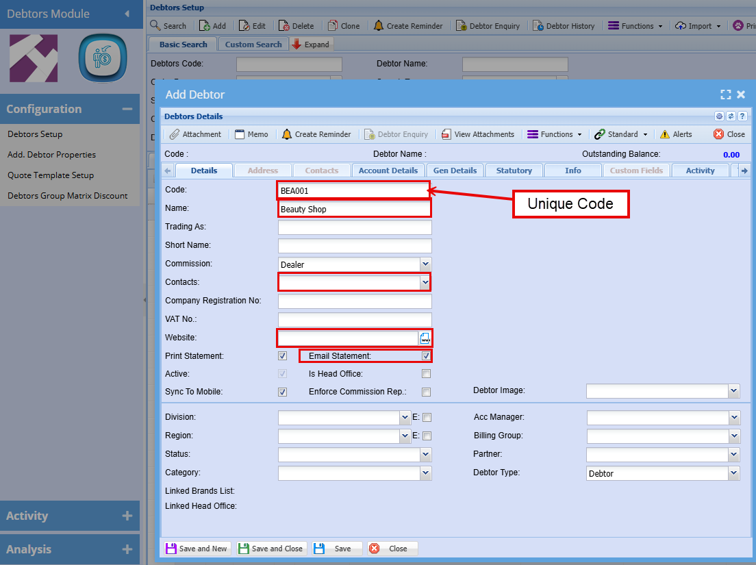 Debtor Setup -
