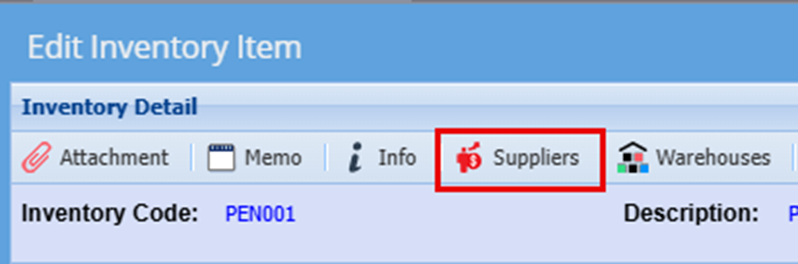 Click the dropdown Arrow for the Supplier Code. Here you will find your already created suppliers list.