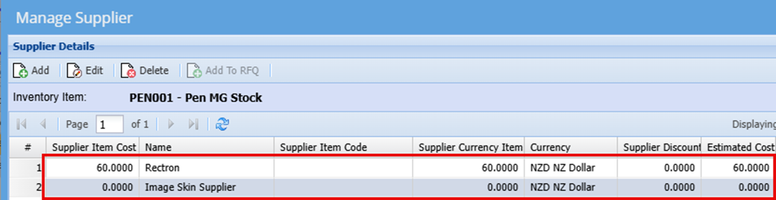 Once you have clicked save you will see that your supplier is now linked to the specific product with a Cost price.