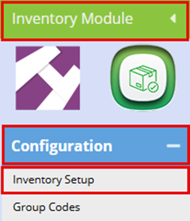 Log in to the inventory module, Configuration, Inventory Setup.