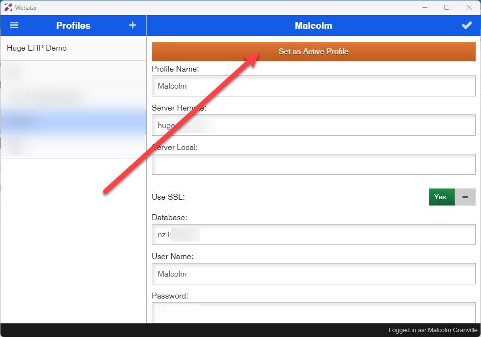 Set the profile to be the active profile by clicking on the orange button called Set as Active Profile