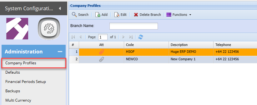 System Configuration > Administration > Company Profiles