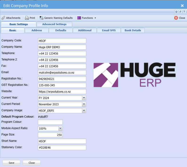 Setting up all your company details.