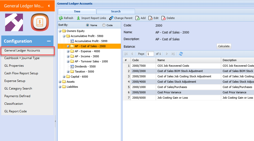 General Ledger > Configuration > General Ledger Accounts