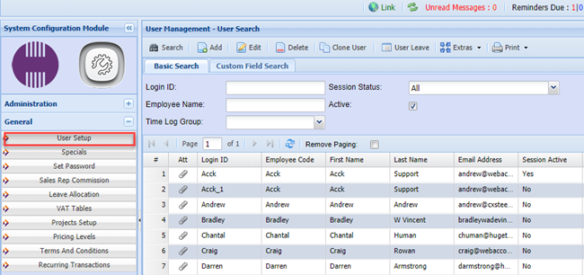 System Configuration > General > User Setup