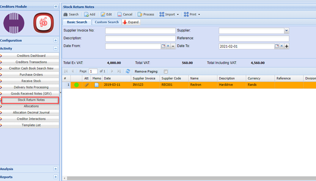 Stock Return - Purchase Credit