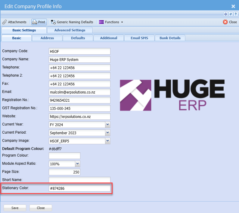 If you leave the stationery colour on the document blank, it will assume the colour selected on the main company profile setup.
