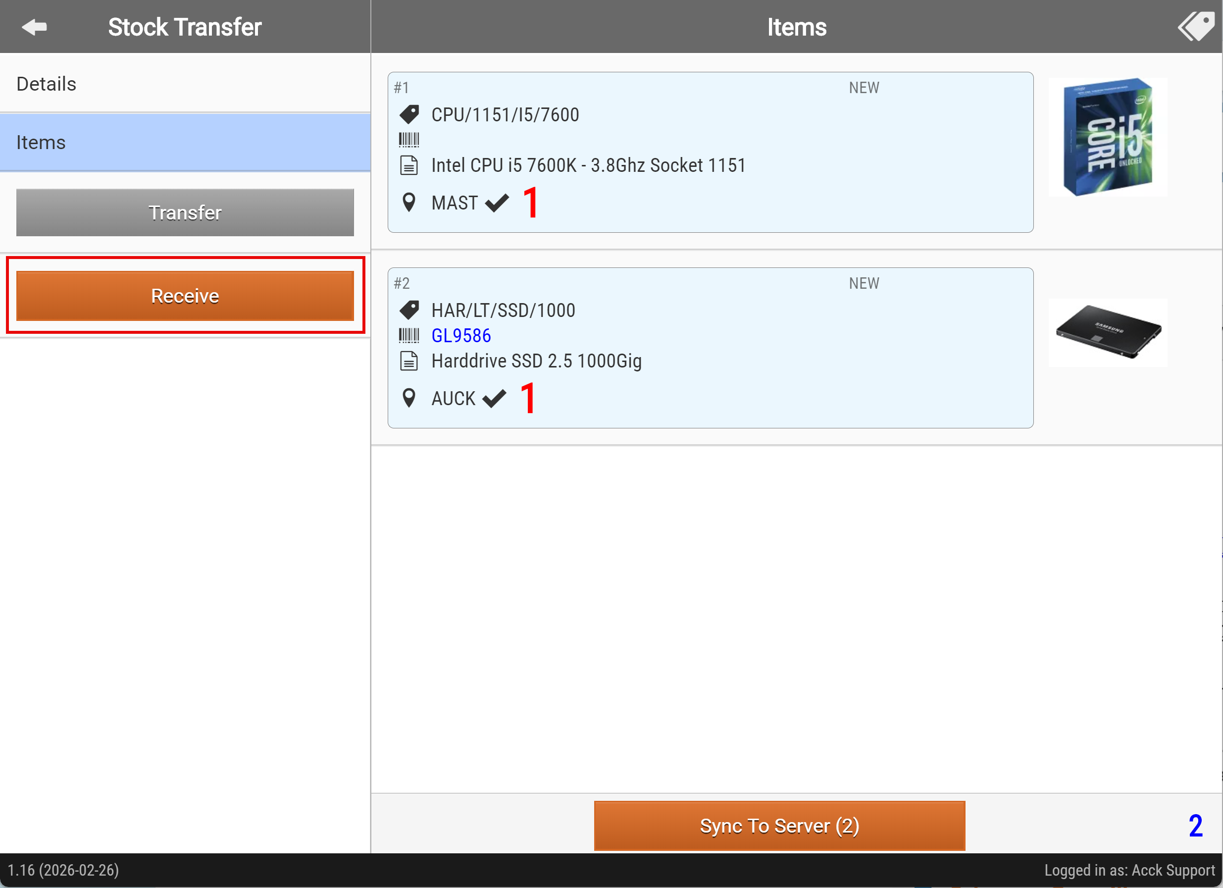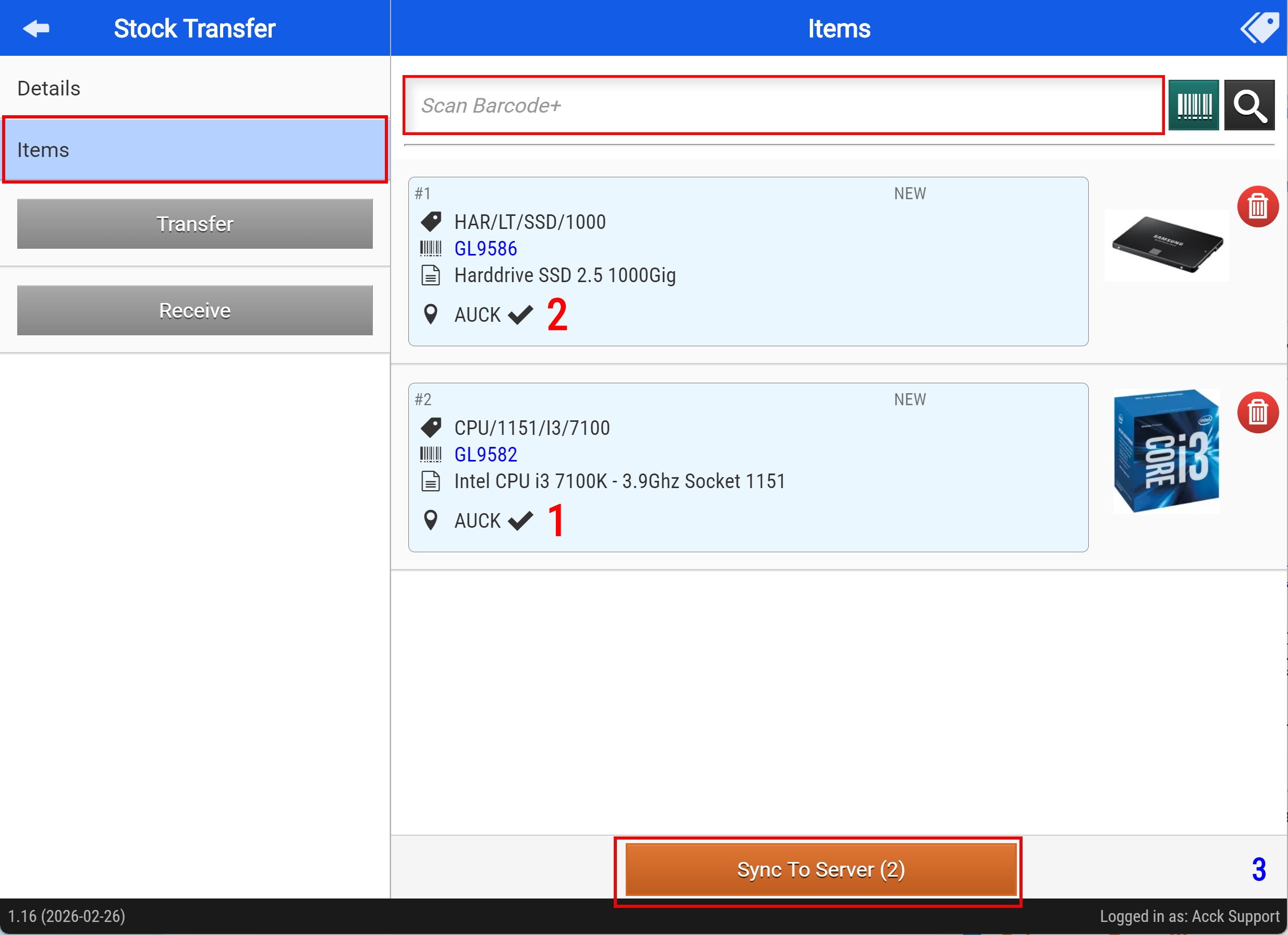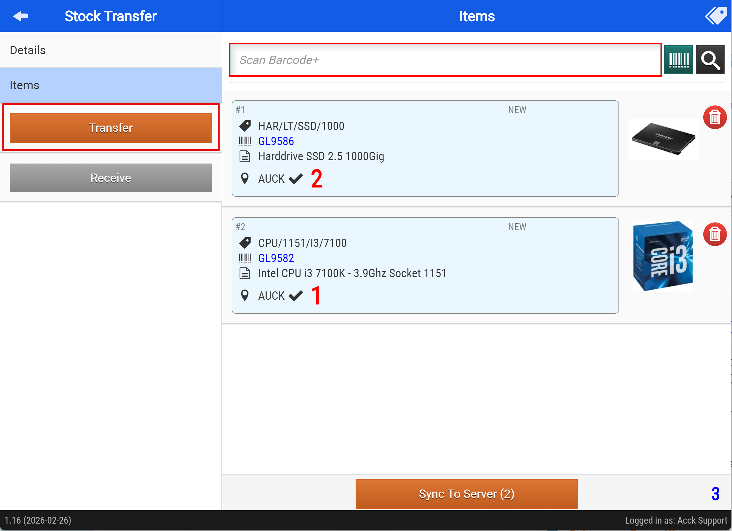 - Tap "Sync to Server" when you have added all the items to be transferred