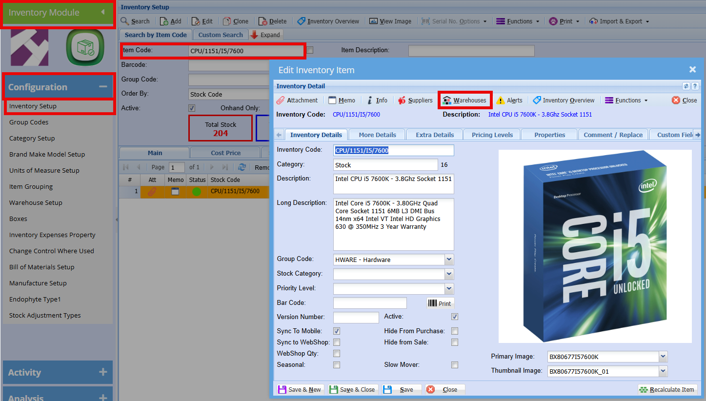 Inventory Module > Configuration > Inventory Setup