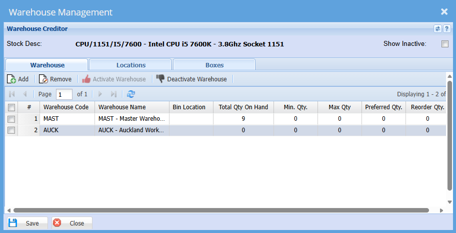 Before you can transfer a stock item from one warehouse to another, the item must be linked to both warehouses. This is completed during the item setup process.