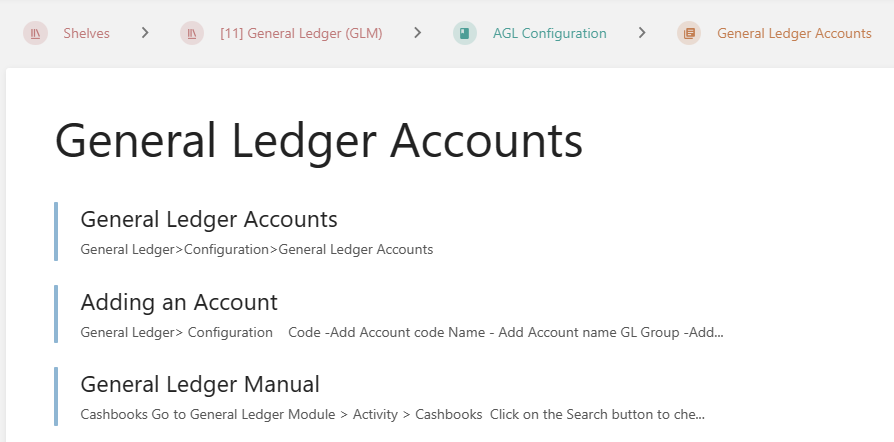 | Shelves | Main Modules - General ledger Module |