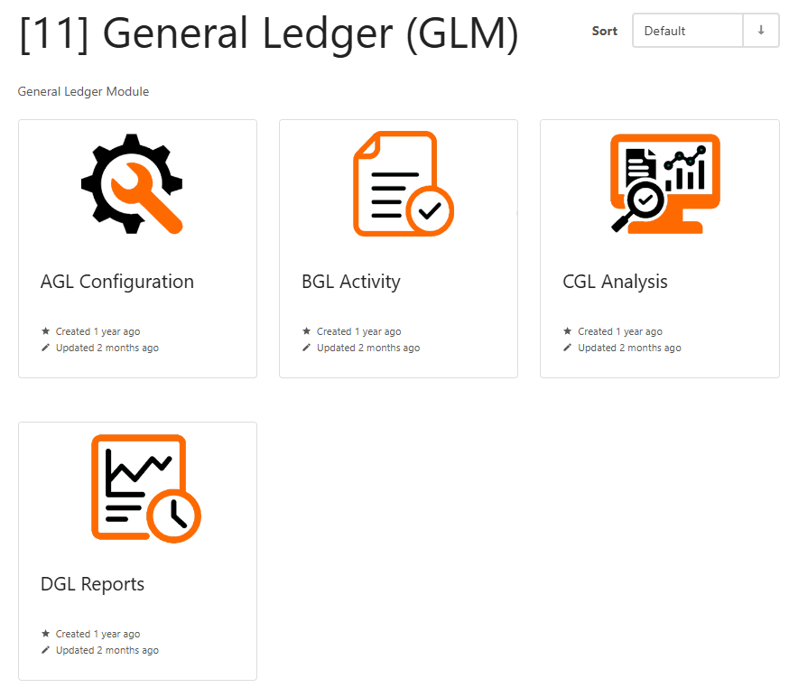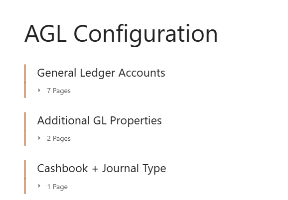 Menu items General Ledger setup etc |