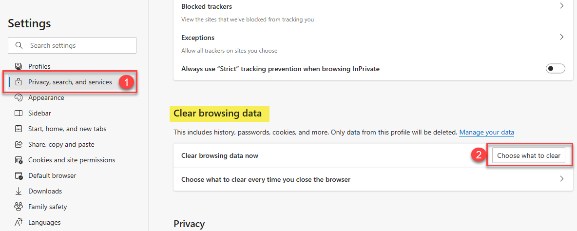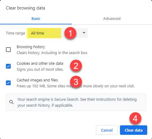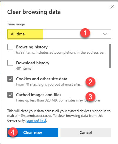 Clearing internet cache for MS Edge and Google Chrome