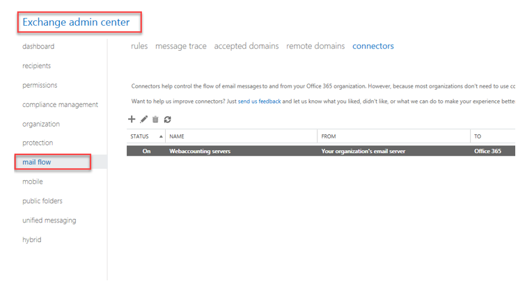 Then to mail flow and to connectors and add new