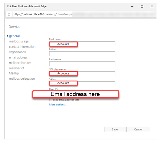 What needs to be done here is to set up an email address with a username and password in Office 365.