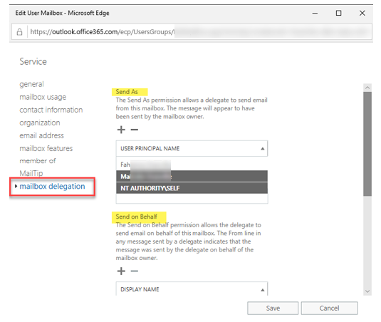 Then allow the user to send on behalf of users.