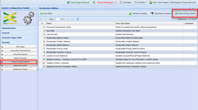 Go to System Configuration > Security > System Recalculations