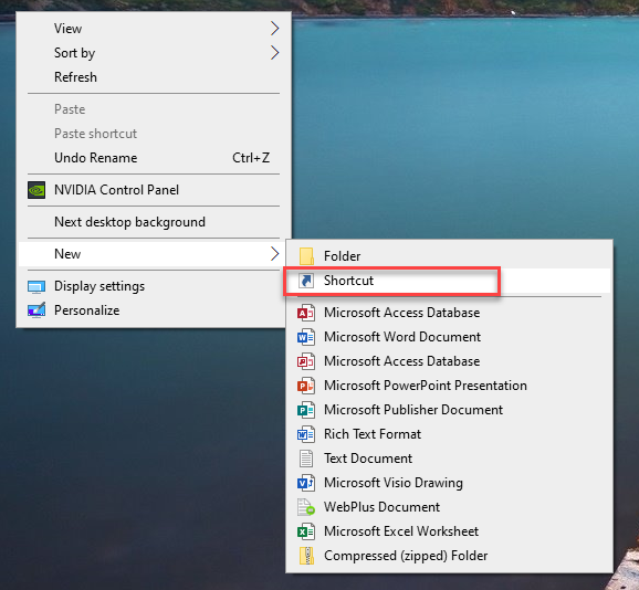 Shortcut on Desktop