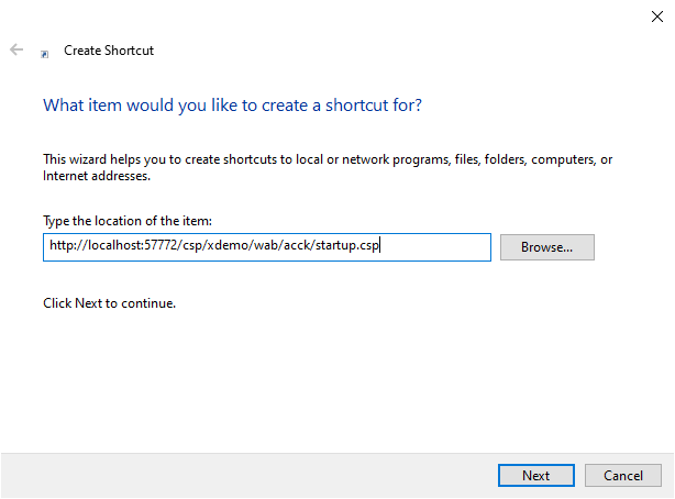 Click on next and rename the shortcut
